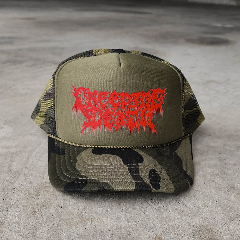 Classic Creeping Death Logo. Printed on Otto snackback trucker.