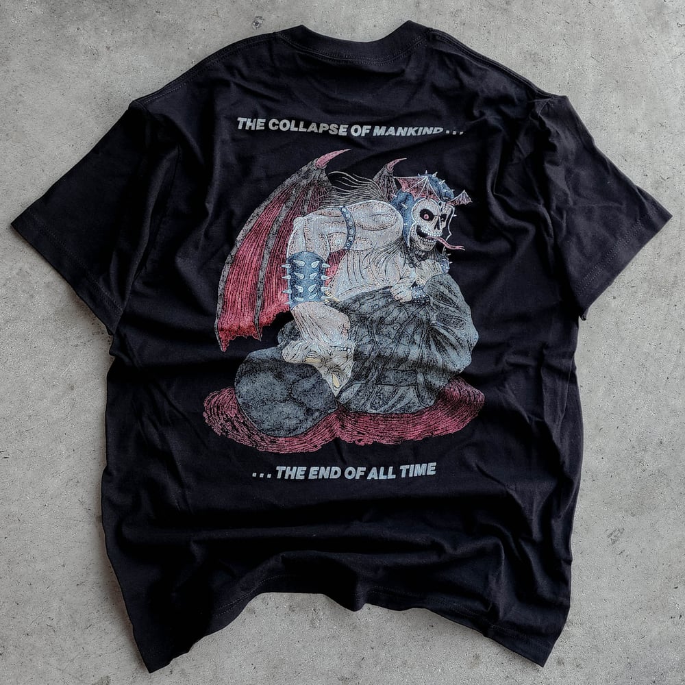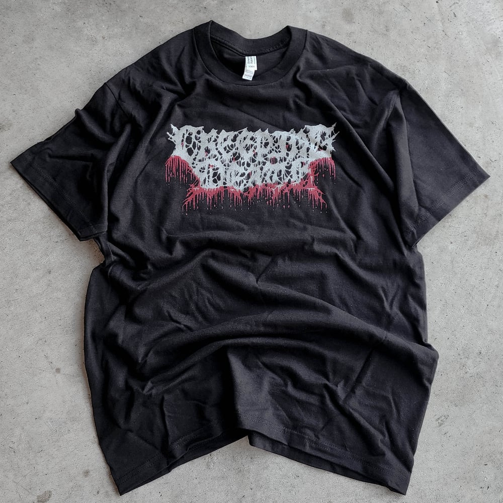 Double-sided t-shirt with Creeping Death's "Bloody" logo on the front and "End Of All Time" graphic on the back, printed on American Apparel 1301.