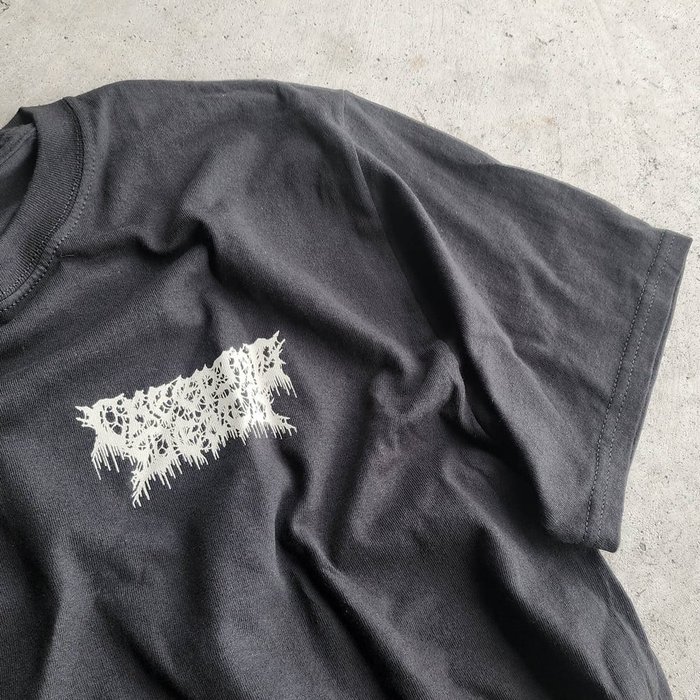 2-sided tee featuring a pocket logo print on the front, and Creeping Death's "New Agony" graphic on the back. Final run - last call! Printed on Port & Company Core tee.